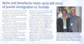 Artist and benefactor team up to tell story of Jewish immigration to Toronto (PDF)